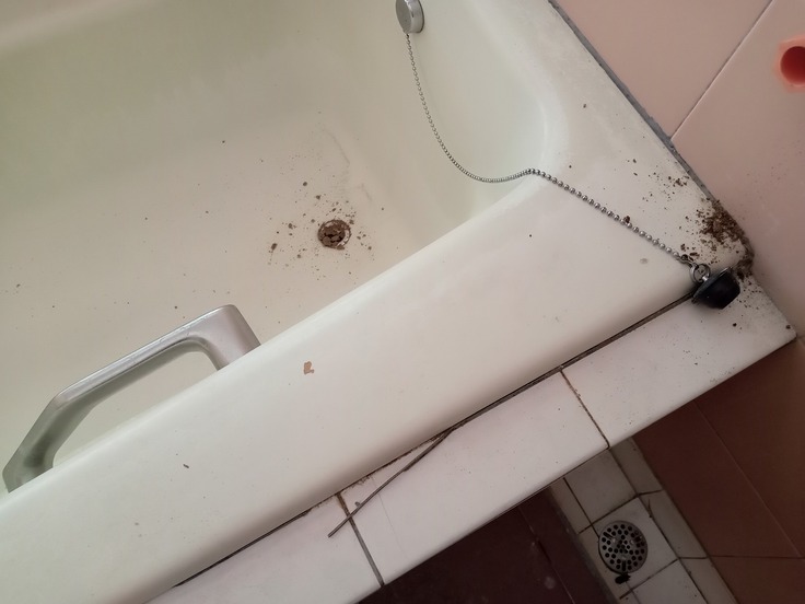浴槽周りに土が持っていて、何かと思っていたらシロアリのせいで、タイルの下や柱はスカスカだそうです。