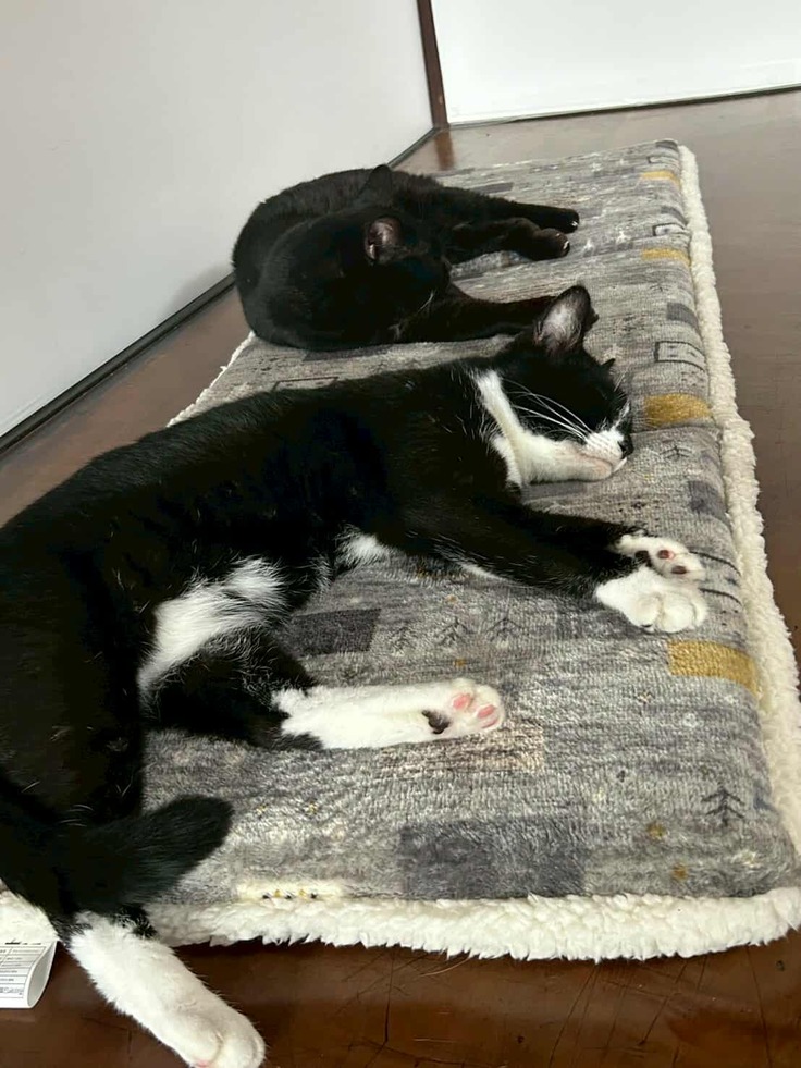 シートで寝ている、余裕の「ゴン店長」と「ウバさん」。