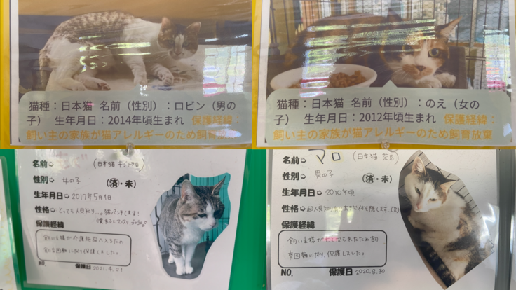 ボランティア先の施設では50匹以上の猫たちが保護されており、10歳以下、10歳以上で部屋が分けられています。