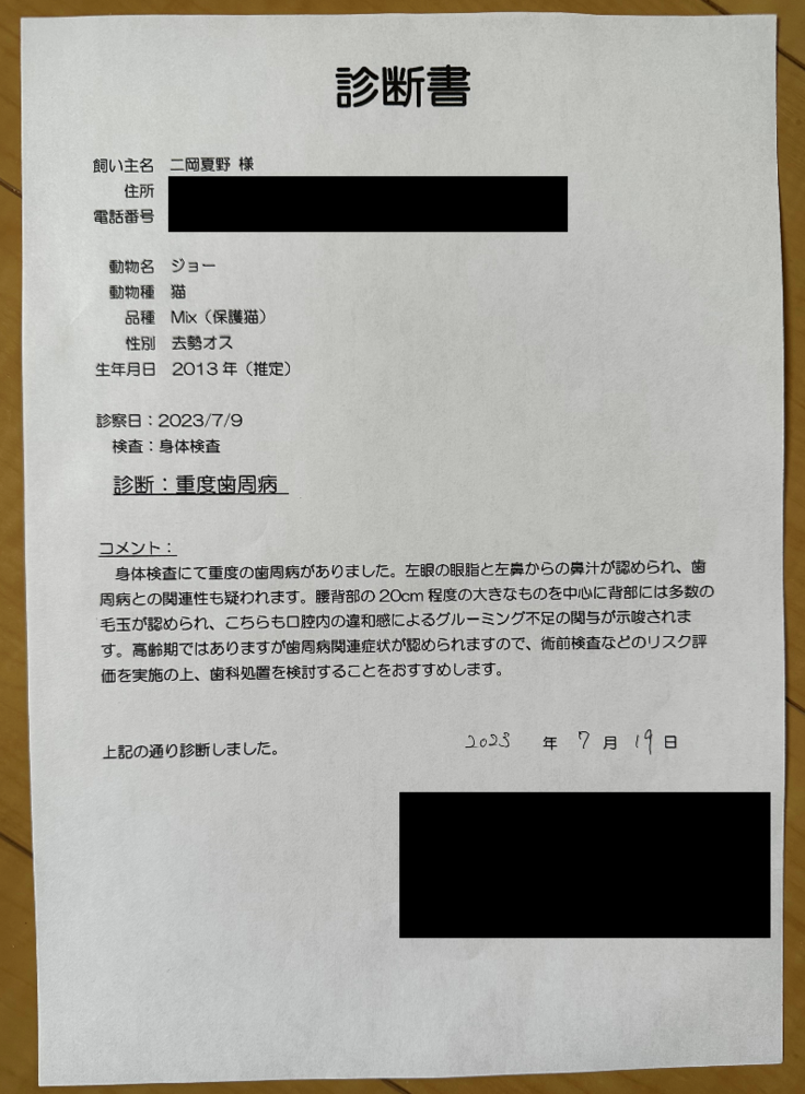 ページ上に掲載している診断書や診療明細書などの資料は全て動物病院から掲載の許諾を得ております。