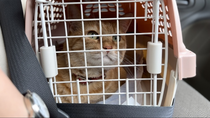 車内でののぞみちゃんは心配そうに鳴きはするものの、前回のようにおもらしはせず、よだれを垂らしながらもじっと耐えて頑張ってくれました。