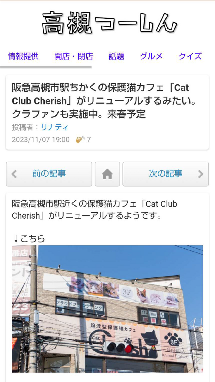 メディア情報|高槻つーしんさんに取り上げていただきました!(11/07掲載分)