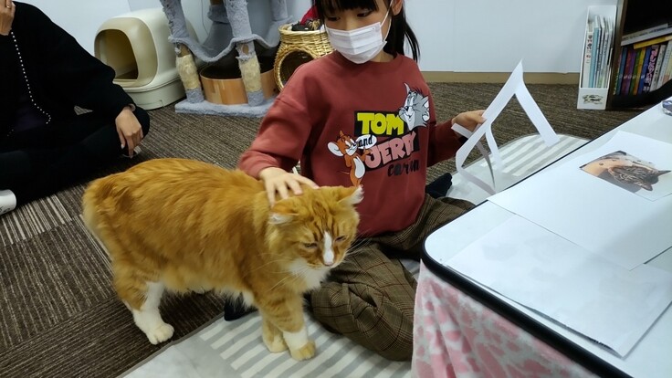 にゃん子屋の小学生、保護猫写真家Shintarrowさん、Cherishスタッフが分担して