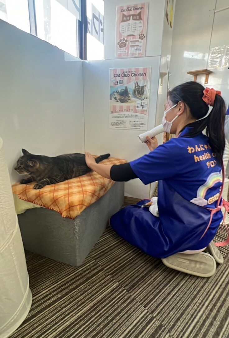 👆出張サロンでドライシャンプーをされている、とのことでバンブーと茶々丸も店内でケアしてくださいました!ドライシャンプーは初めて見るスタッフが多く、色々と勉強になりました👀