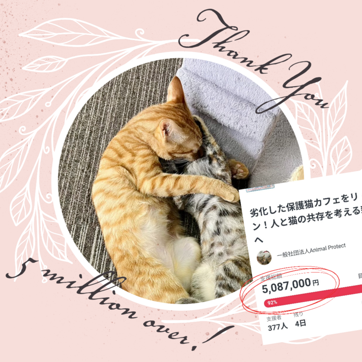 ※ 特別なリターン品をお届けしない代わりに、ご支援のほぼ全てをプロジェクトに充てさせていただきます。猫のためにありがとうございます。