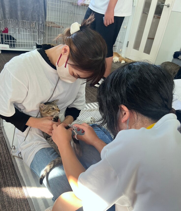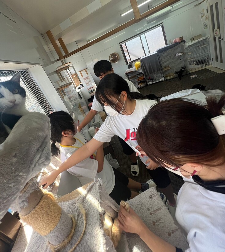 もちろんお馴染みの掃除や猫のお世話も体験してもらいました。