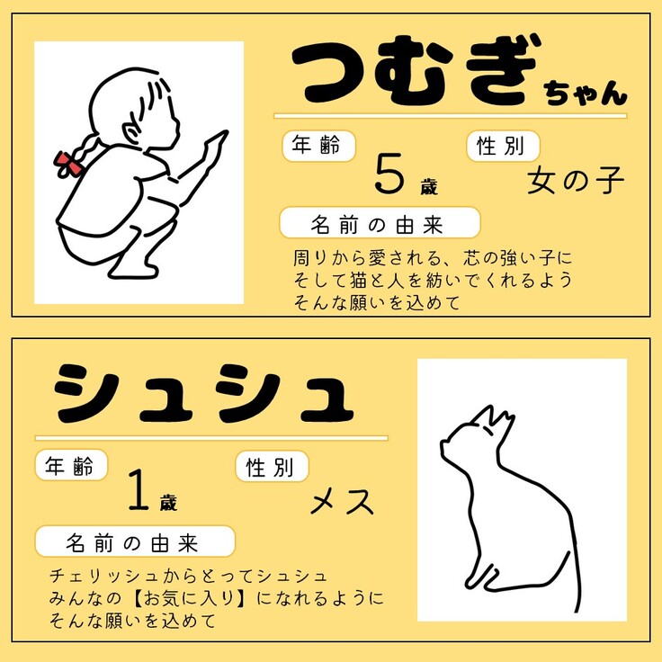 女の子のお名前は「つむぎ」 猫ちゃんのお名前は「シュシュ」になりました!