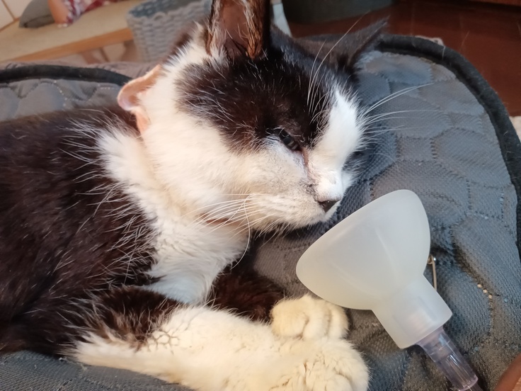 くーちゃんですが、すこし前にもともとの持病、喘息の大きな発作をおこし、そこから呼吸が不安定となっています