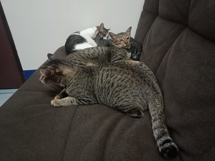 野良猫母ちゃんファミリーですが、やっと乾季らしくなってきましてそれぞれが活動的になってきました。