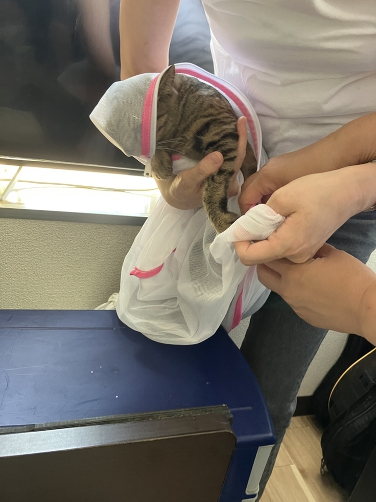 すぐに迎えに行き飼い主としっかり話をしました。私たちが来る前にギターケースに隠して、引越し作業中もひた隠しに隠し、車に積んで運んだということでした。