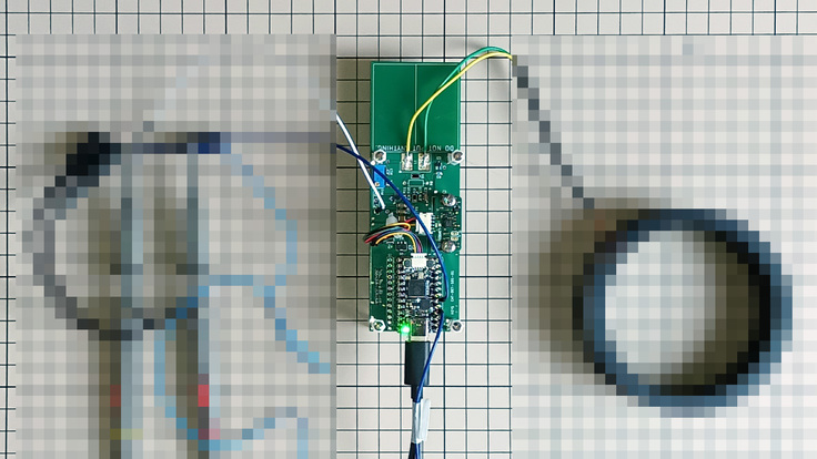開発中の通信装置(特許出願の都合で写真にはモザイクをかけています)