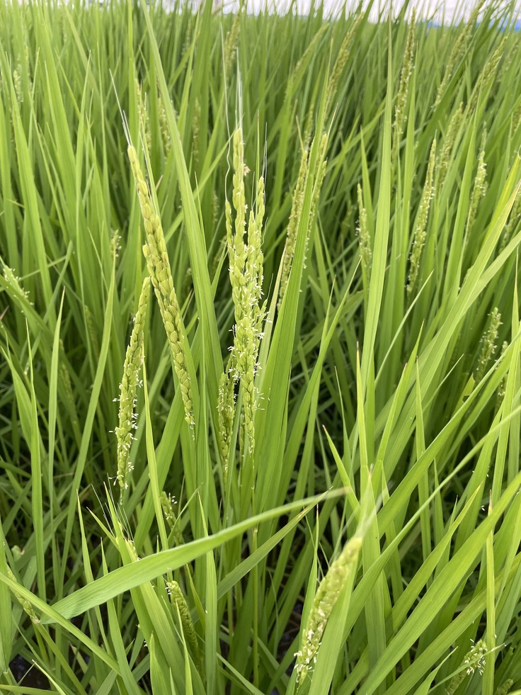 新潟大学農学部の山崎です。私たちの田んぼで栽培している「コシヒカリ」が出穂(しゅっすい)してきました。いわゆる開花になり、とても綺麗です。天気にもよりますが、午前10時からお昼くらいまでの短期間ながら、お米づくりにとっては大事なイベントです。この時期は水も大量に消費するので、水管理も欠かせません。