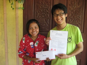 とても立派なクメール語を書き(学校の先生でもクメール語が上手く書けない人がたくさんいます)、CBBとのずっと繋がりがありましたが、働けると言ったりお給料が少ないからやらないと言ったり、言う事が2転3転。
