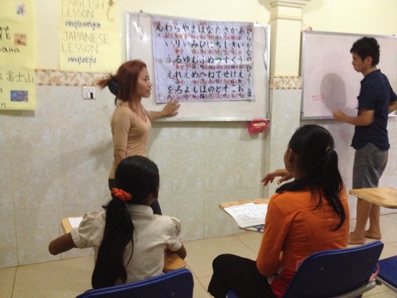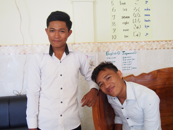 以前クメール語の張り紙が必要なとき、「クメール語を書くのがすごくうまい友達がいる」と紹介してもらったのが彼。算数の塾を子どもたち向けに開く秀才です。クメール語を書かせたらボラ、ということで日本語の教材作りにも大活躍してもらっています(笑)