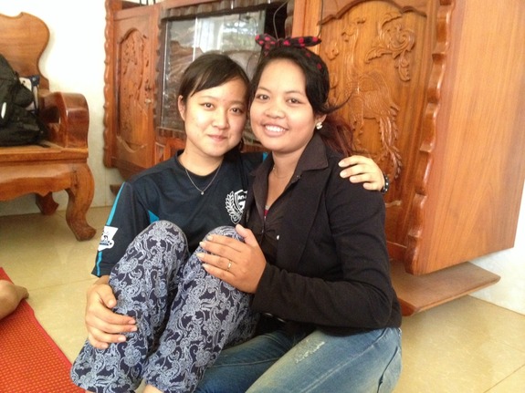 (▲右がキムスリー。自転車を支援したときから仲良しの国内メンバー、ひかりちゃんによく会いにきます。)