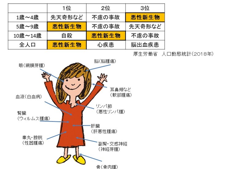 小児がんは白血病や悪性リンパ腫と言われる悪性腫瘍の総称で、亜種を含めるとその数は数百種類もあります。日本では年間に2,000~2,500人の子どもたちが小児がんと診断されています。