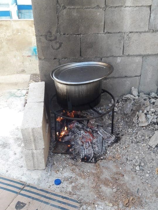 プロパンガスが手に入らないこともあり、屋上で段ボールや廃材を燃やして料理をすることもあります。