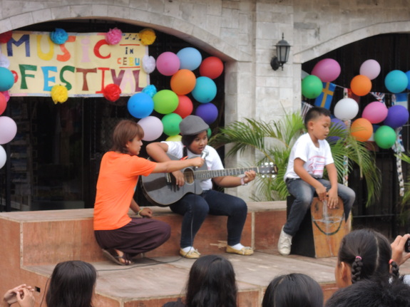 上の2枚の写真では、キーボードやギター、カホンなど鍵盤ハーモニカ以外の楽器を演奏している子どもの姿を見ることができると思います。
