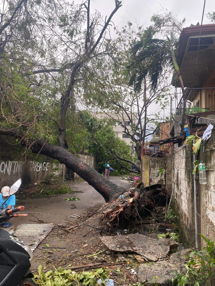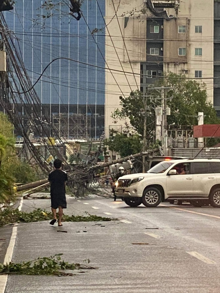 (街の至る所で電柱や大木がなぎ倒されています。その影響で多くのエリアで停電が続いています)