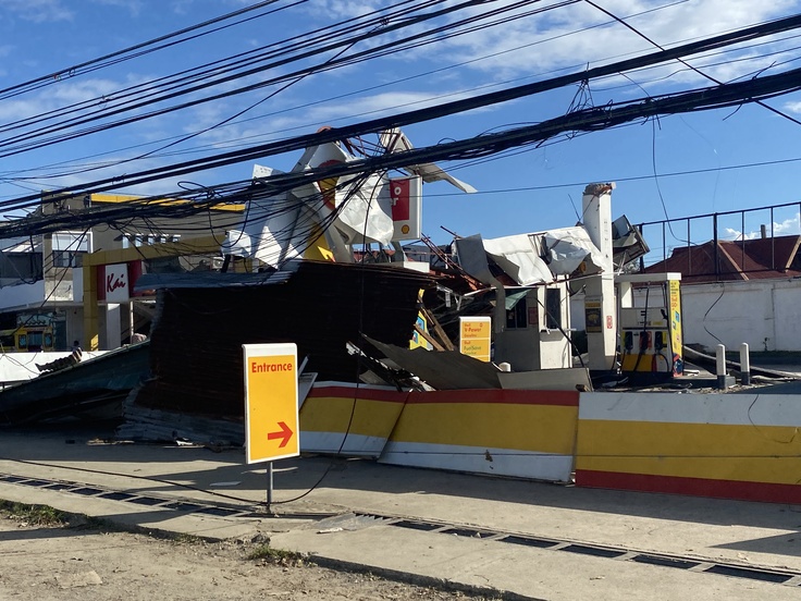 (ライフラインとなるガソリンスタンドも破壊されてしまいました。【写真提供:セブポット】)