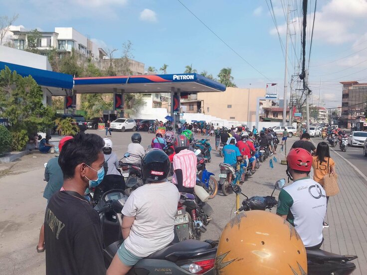 (営業ができているガソリンスタンドには長蛇の列ができています。しかも輸送システム自体も麻痺しているところが多く並んでも手に入らない状況も多くなっています。)