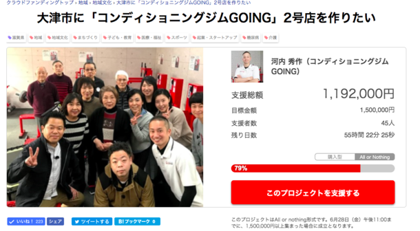 必ず達成させて、大津市に「コンディショニングジムGOING2号店を作り、みなさんの健康に貢献できれと思います。