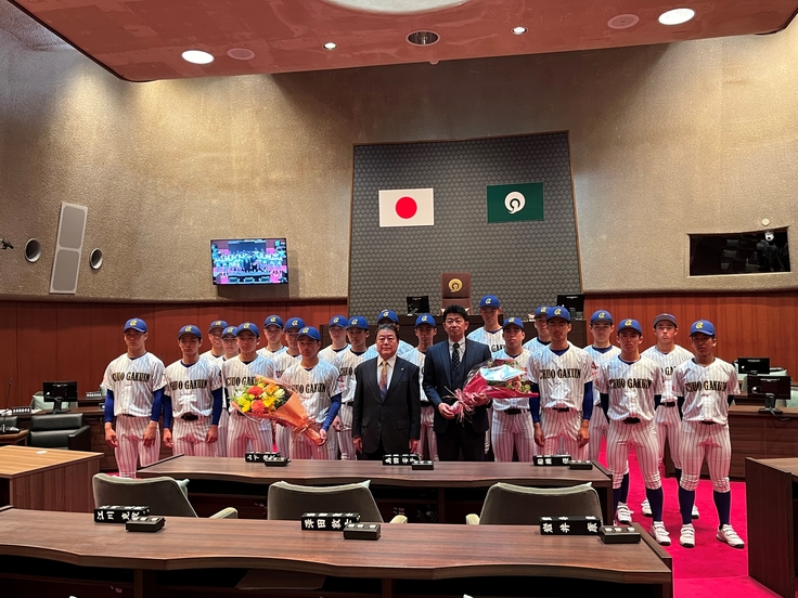 4月12日(金)に、第96回選抜高等学校野球大会の大会ベスト4の結果報告のため、我孫子市役所へ訪問させていただきました。
