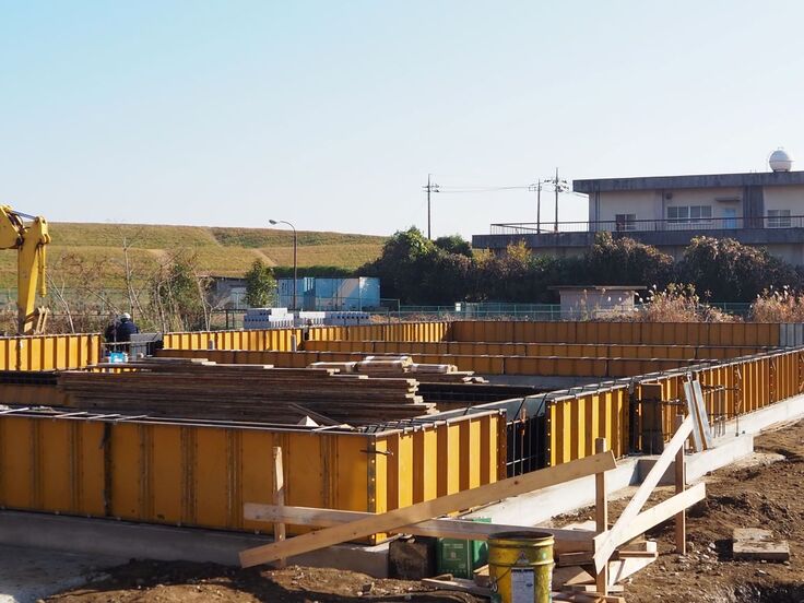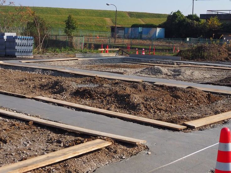 今回計画している学生寮は、選手たちの宿舎棟が2階建て、食堂などの共用棟は平屋の構造となっております。基礎工事の工程については、共用棟エリアから順調に進行しています。