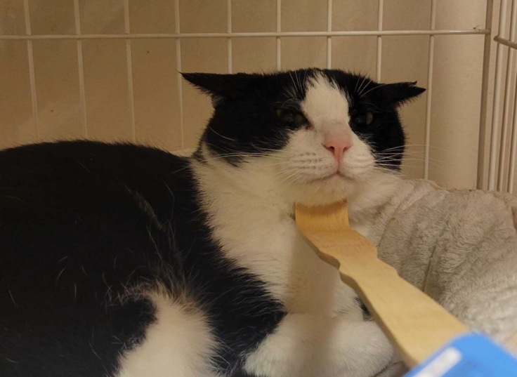 私の手からチュールをほんの少しだけ舐めてくれました。