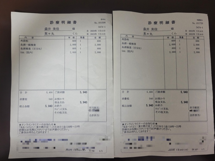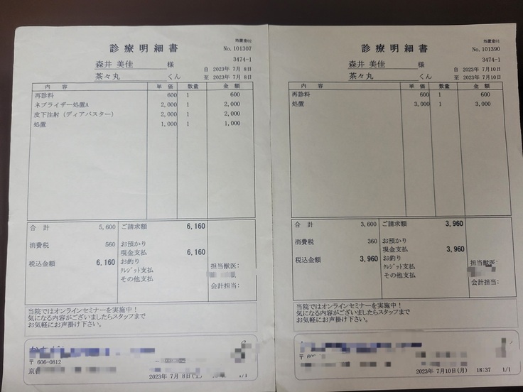 手術直後は患部が塞がって息が苦しくなったりして度々通院していましたが、最近は落ち着いてきて週に1,2回の通院となっています。