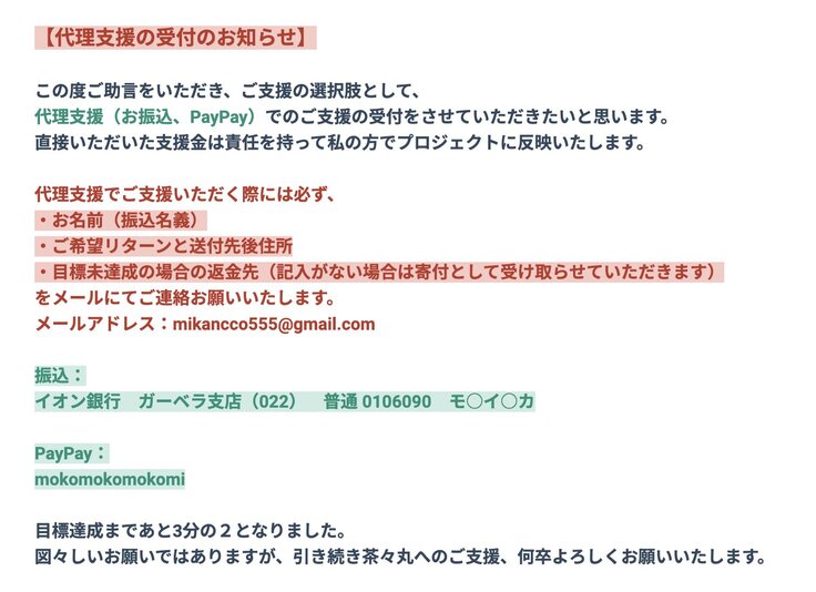 引き続き、茶々丸へのご支援のほどよろしくお願いいたします。