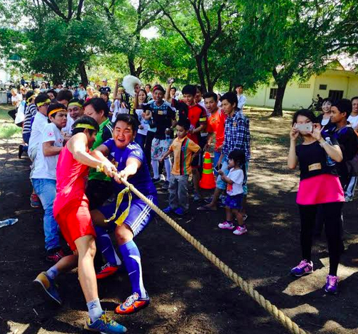 (以前開催した運動会。カンボジア人と日本人で力を合わせて