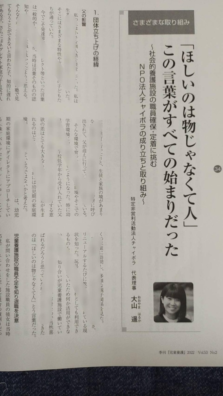 2つ目)全国社会福祉協議会が発行する季刊児童養護最新号に記事が掲載されました!