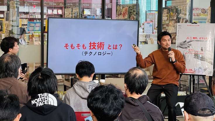 サイエンス・カフェは、一般市民と科学者・研究者をつなぎ、科学への社会的理解を深めることを目的としたコミュニケーションの場です。宮原准教授は、AI技術が進展する現代における「人とモノのあいだ」の哲学的問いを、市民とともに語り合いました。