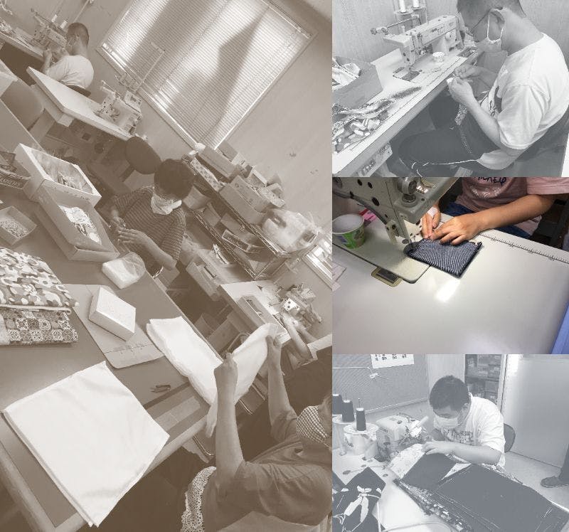 今回縫製をお願いするのは、大阪八尾市にある社会福祉法人信貴福祉会によって運営されている就労継続支援B型福祉作業所「りんごの木」の皆さんです。