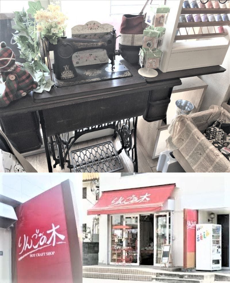 作業所の1Fは他の作業所の商品も含む直売店舗になっています。アンティークのミシンを使ったおしゃれなお店作りです。