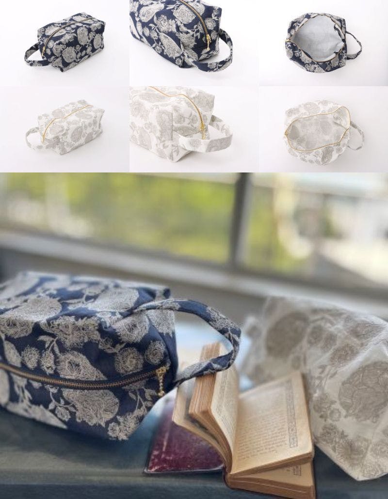 フラットに折りたため、広げると大容量のポーチは旅の必需品。持ち手まで一体で子鹿レースの生地で作られていますので、旅行だけでなく、このままお出かけのバックにしても素敵です。