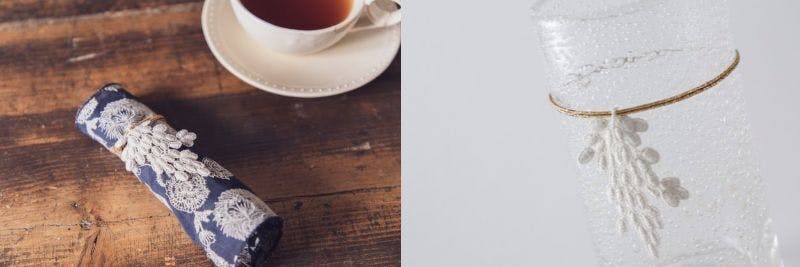 食事やお茶の時、マスクを収納しこのようにテーブルの上にも置いても美しく見えるようにロールマスクケースを付けました。