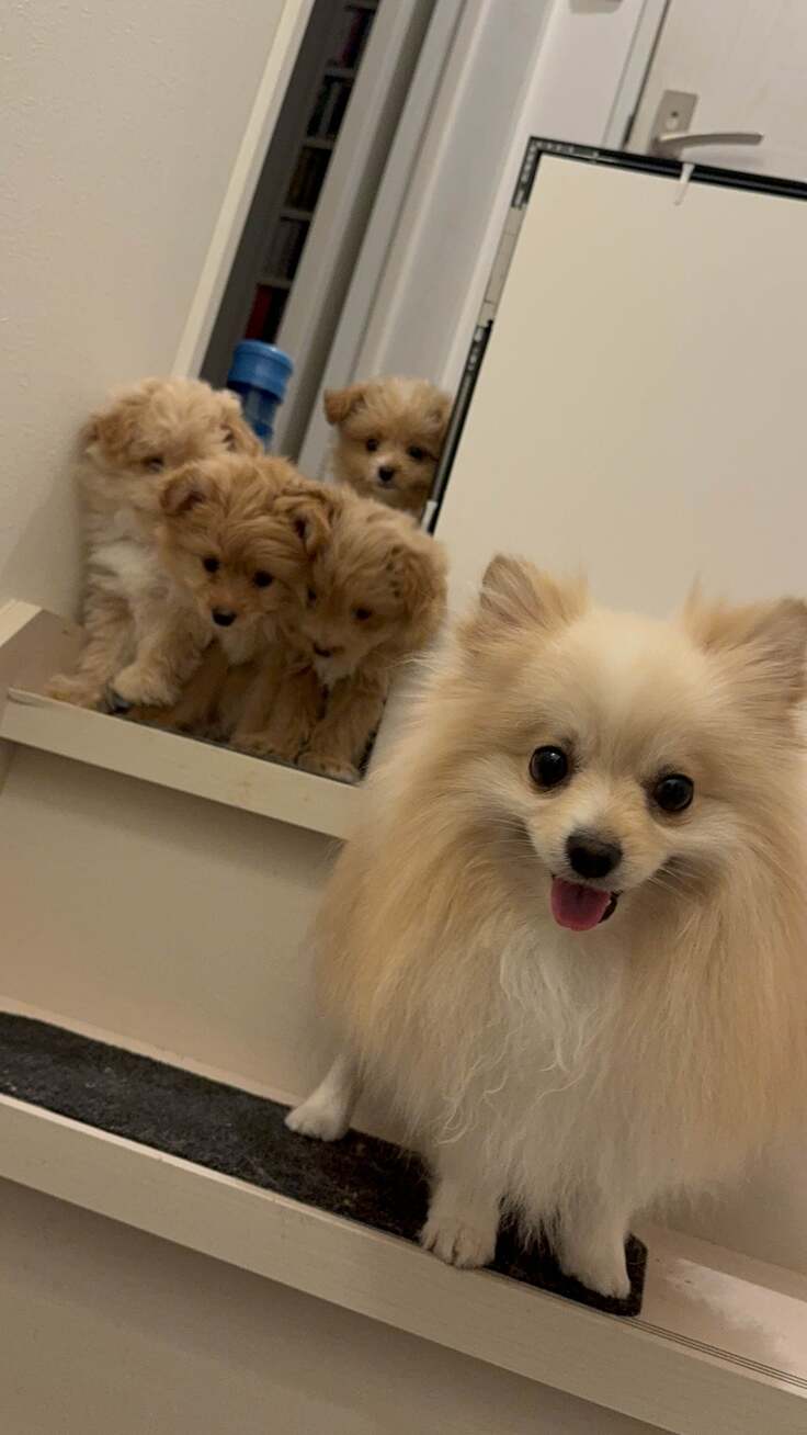 チャコ丸は、父:ポメラニアン 母:トイプードルの間で今年3月14日に、自宅にて4匹のうち唯一女の子として産まれてきました。