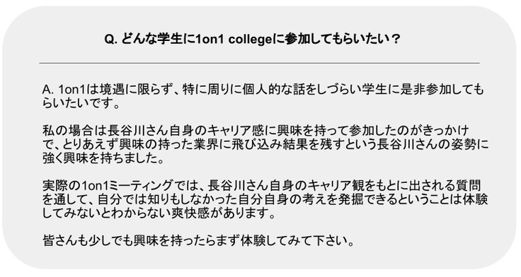▶︎1on1 college参加者の声