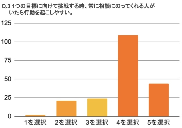 Q.3 1つの目標に向けて挑戦する時、常に相談にのってくれる人がいたら行動を起こしやすい。