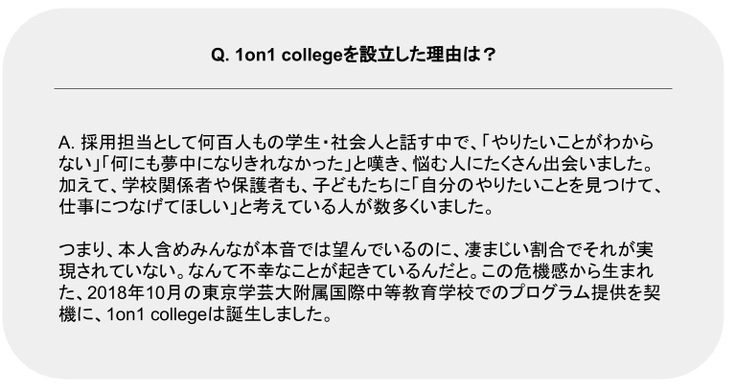 ではそもそも1on1 collegeとはどのような事業なのでしょうか?