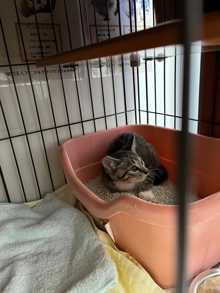 猫白血病は陽性でしたが、なかなかずっとのお家が決まらないまま過ごしている子も多い中で、幸運の子猫だと思います!