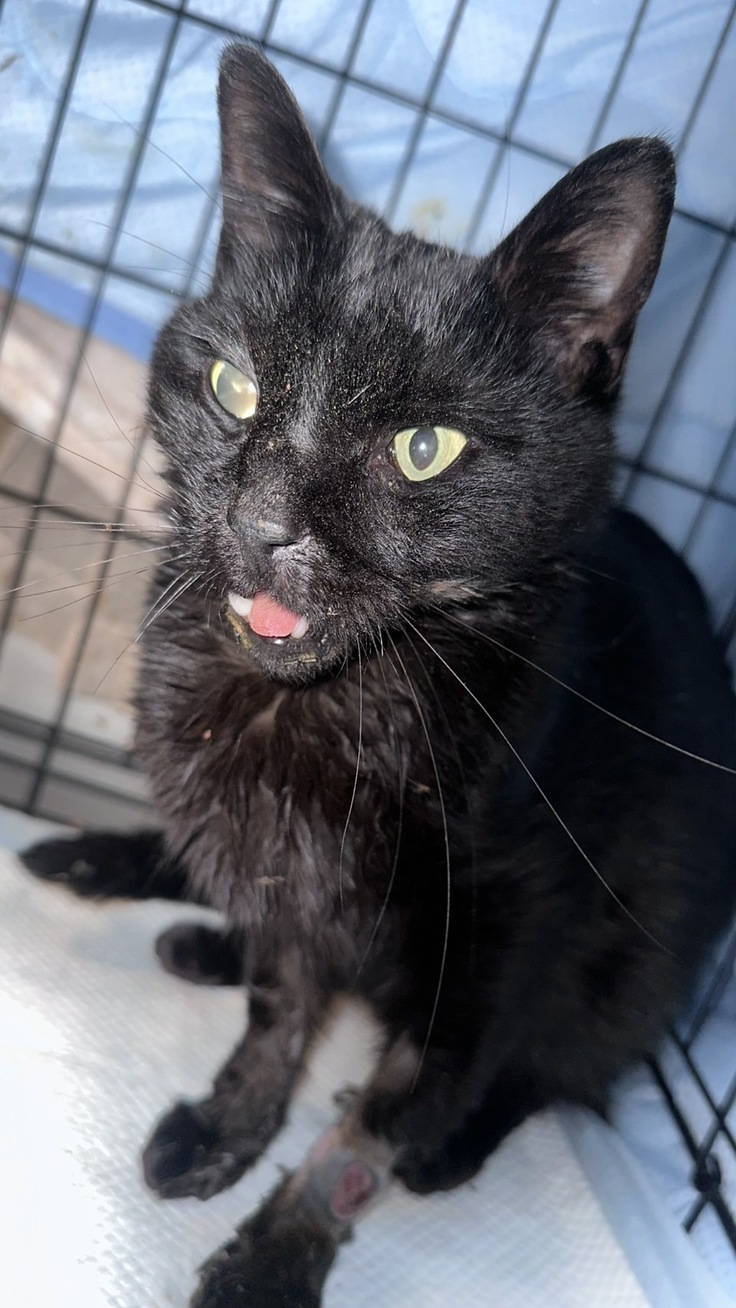 1週間後、退院したクロちゃんのお世話はとても大変でしたが、ここねさんが担当してくれて、毎日献身的にお世話して、現在はまだ自力での食事はできませんが、飲み込む力もつい尽きて、排泄も大丈夫で、曲がった足も治ってきて、歩けるようにもなりました✨