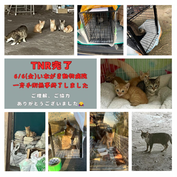 今回のTNRはもえぎの台2箇所2匹、子猫保護4匹、上曾根6匹の手術予定でしたが、もえぎの台では1匹捕獲ができず、上曾根では、母猫と1匹の子猫が居なくなってしまい、残った子猫達はまだ小さくTNRではなく保護になりました。