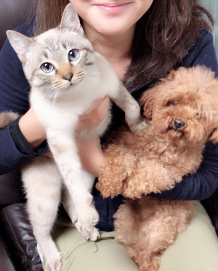 愛犬ちゃな(トイプードル/レッド)8歳と、愛猫ルパン(保護猫)5歳と賑やかに(騒がしく?)暮らしています。