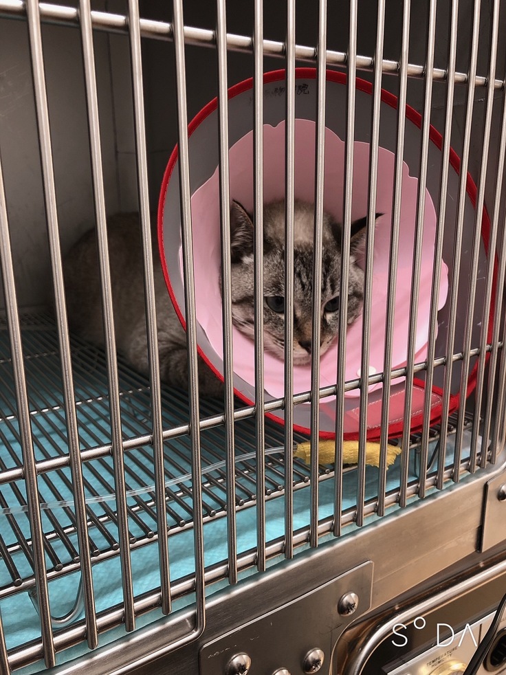 お腹の調子が2日ほど良くなく、ぐったりと動かず、餌を食べなくなり、様子が変だと翌日病院へ行ったところ、子宮蓄膿症でした。