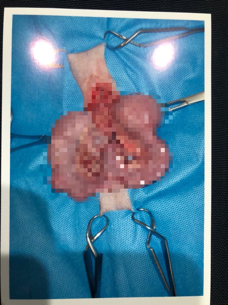 排出しきれなかった膿でまだ大きく肥大した子宮が摘出されました。