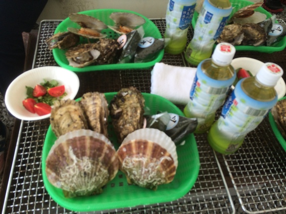 ・ 『かき小屋』さん(焼き牡蠣、ホタテなどをいただきました!)