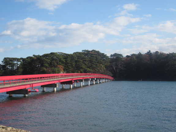『日本三景のひとつである松島は,島々が波の強さを弱めたため,津波の被害が比較的小さかった地域だが,激しい揺れにより使用不能になった店舗がいくつかあり,観光名所・五大堂へ向かう途中にある「すかし橋」の下では,海面に木材が浮いていた。それでも観光地としては機能しており,親子連れや熟年夫婦などさまざまな人が歩いていた。遊覧船も運航を再開しており,船が桟橋に到着するたびに大勢の乗客が下船していた。』